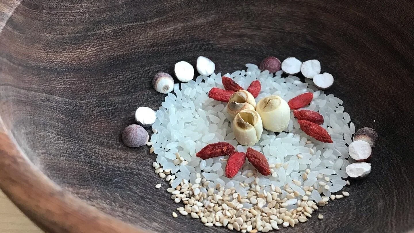 One of the main principles of congee is to ‘warm the middle’, alleviate strain on the digestive process, and tonify the Spleen. The Spleen is the organ who transforms our food into available energy so that our body can build enough Blood and Qi (energy) to circulate and support a resilient state of health. Just as you wouldn’t want to throw cold water onto a fire or a furnace that keeps a kitchen warm and thriving, the Spleen dislikes the shock and challenge of cold foods and drinks. The warm, nourishing bowls of congee are a welcome change from many of the foods we like to consume on the daily: cold smoothies, iced coffees, ice cream, raw salads...
